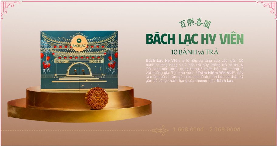 Là dòng lễ hộp cao cấp nhất trong bộ sưu tập Trung thu Bách Lạc, Trân Phẩm được chế tác thành những tặng phẩm đỉnh tuyển, dành tặng đối tác quan trọng và những người trân quý – nơi món quà không chỉ mang hương vị, mà còn thay lời tri ân và gắn kết lâu dài.