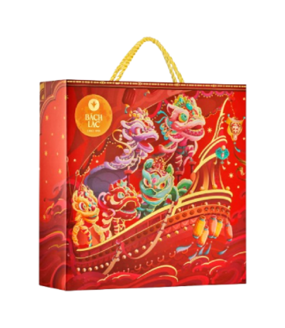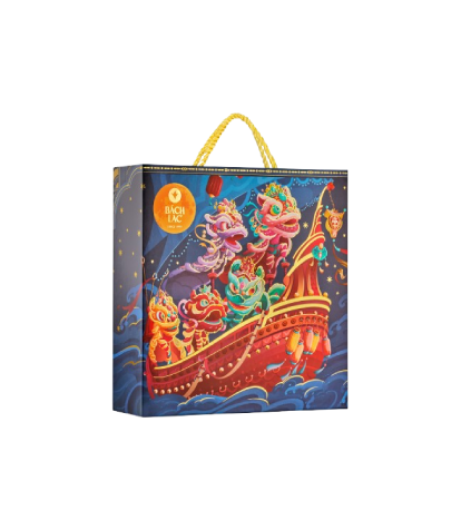 Ngũ Phúc Lâm Môn thuộc dòng Lễ hộp Truyền Thống của Bách Lạc, nổi bật với các vị bánh quen thuộ như: thập cẩm, đậu xanh, hạt sen, khoai môn, mè đen,… Lấy cảm hứng từ lời chúc “Ngũ Phúc” trong văn hóa Á Đông – Thọ, Phú, Khang, Ninh, Thiện – Lễ hộp được thiết kế với hình ảnh năm chú lân đứng cùng một thuyền trăng, biểu trưng cho sự đồng lòng, gắn kết.